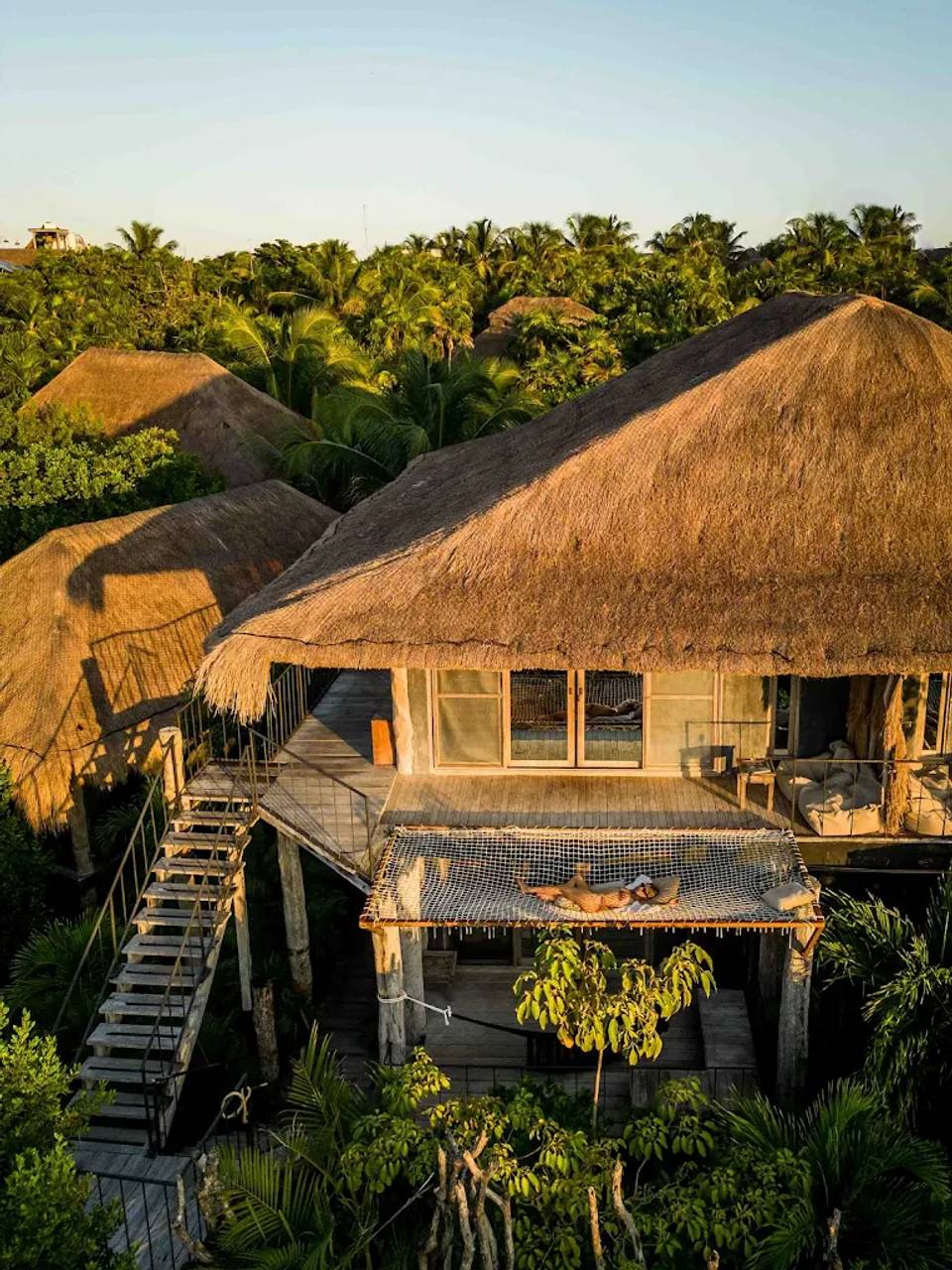 LUSH, BOHEMIAN, LUXURY Pass through our wooden portal onto palm-clad paths that lead you to the Jungle wonderland of Radhoo Tulum. Here you can feel the vibrant heartbeat of the Mayan Biosphere, just steps away from Tulum’s main strip. Our collection of 14 unique rooms embodies Tulum’s bohemian character and jungle sensuality, with an added touch of exotic luxury and comfort. Both sultry and serene, the Radhoo property resonates with an ancient spirit of place that inspires you to enjoy the full abundance of life.